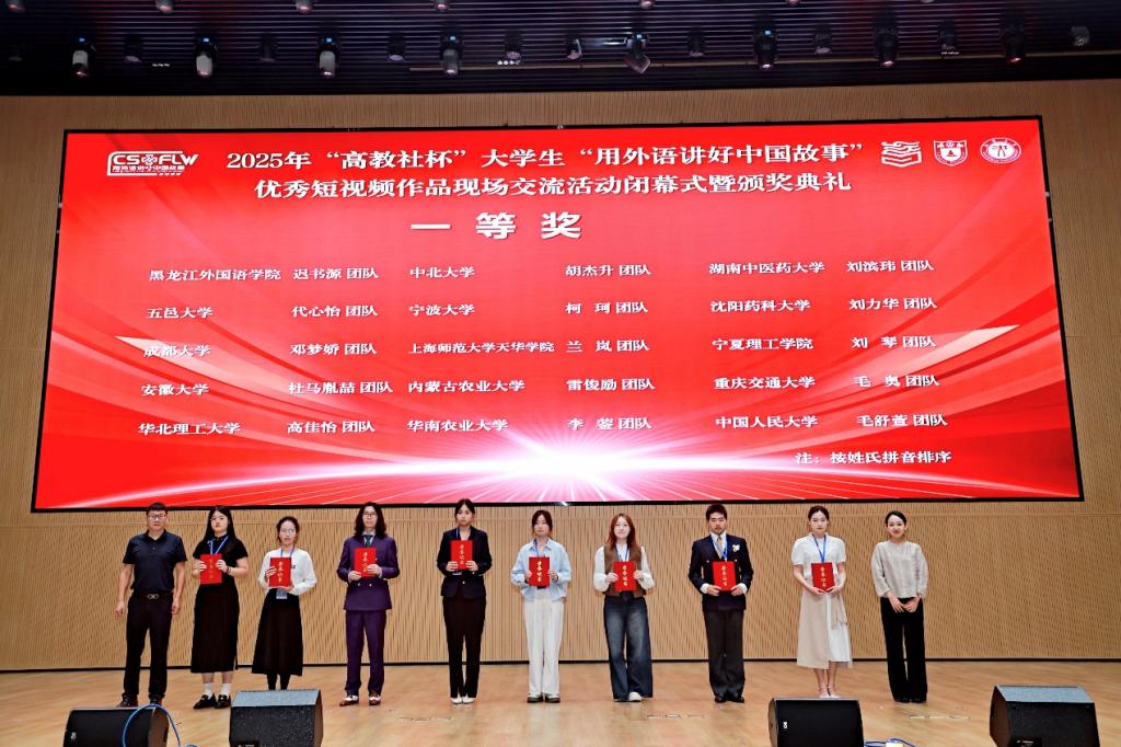 9月19日-21日,由南京大学、江汉大学主办,高等教育出版社协办的2025年“高教社杯”大学生“用外语讲好中国故事”优秀短视频作品现场交流活动在江汉大学举行。本届赛事共征集作品6915件,覆盖29个省市自治区1093所高校。经过校级、省级环节遴选,仅118件作品晋级全国交流活动。由我院和经管学院联合组建、饶巧颖指导的学生团队(毛奥、项宁夏、梁宁容、林小玉)打造的作品《赛博山城,智行起飞》以重庆市唯一本科作品身份晋级,最终荣获本科组全国一等奖;饶巧颖老师获“优秀指导教师”奖,伟德victor1946获“优秀组织单位”奖。