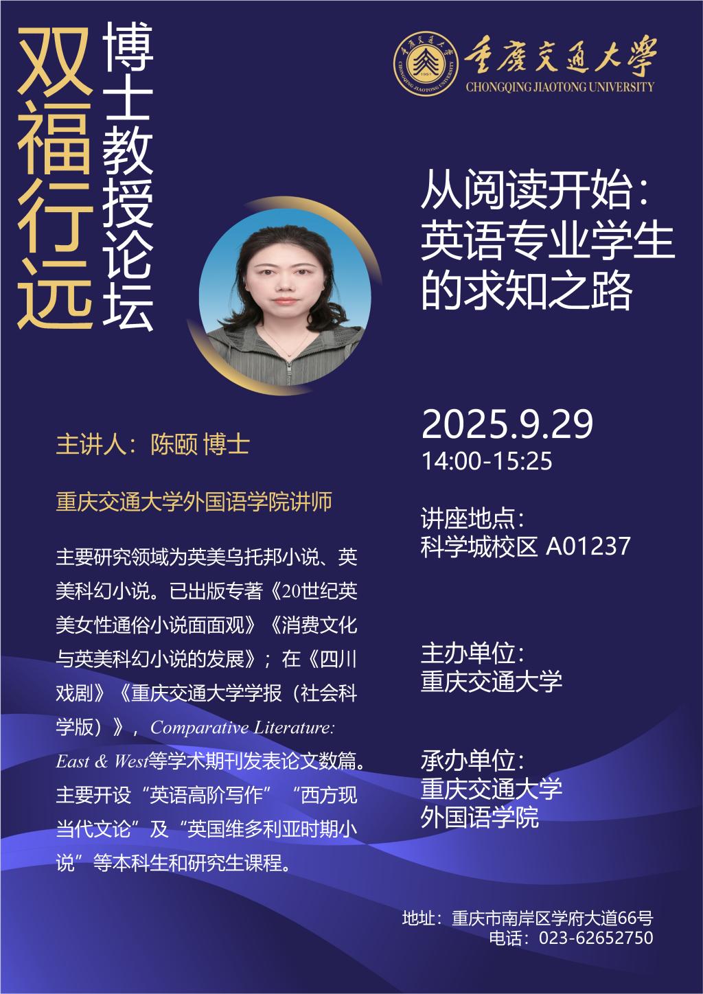 【双福·行远】博士教授论坛预告——陈颐博士 从阅读开始:英语专业学生的求知之路