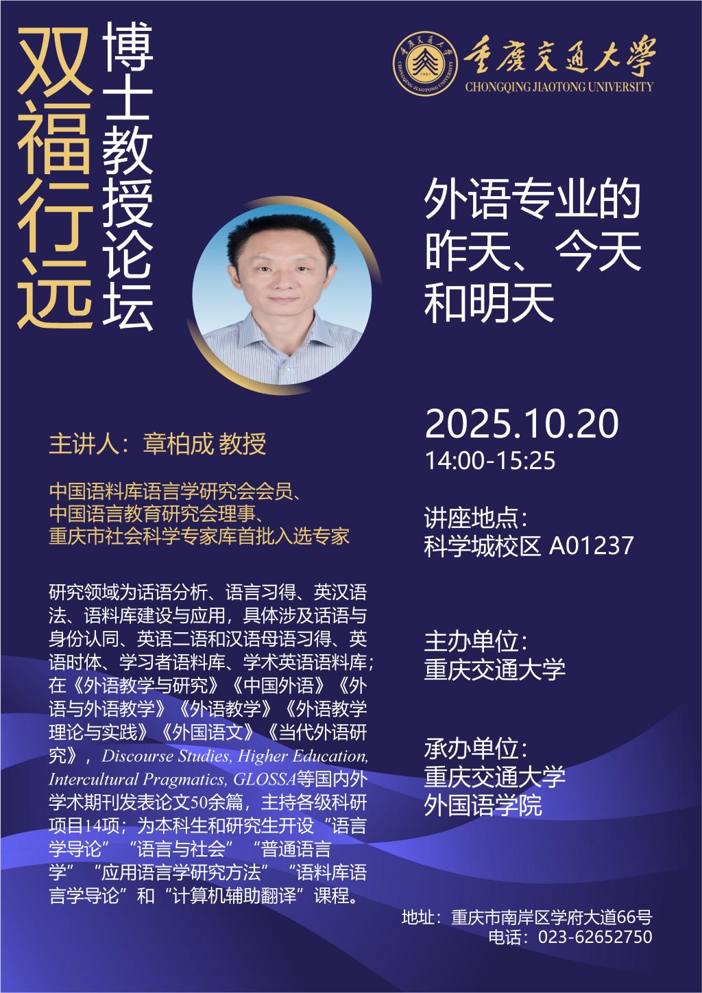 【双福·行远】博士教授论坛预告——章柏成教授 外语专业的昨天、今天和明天