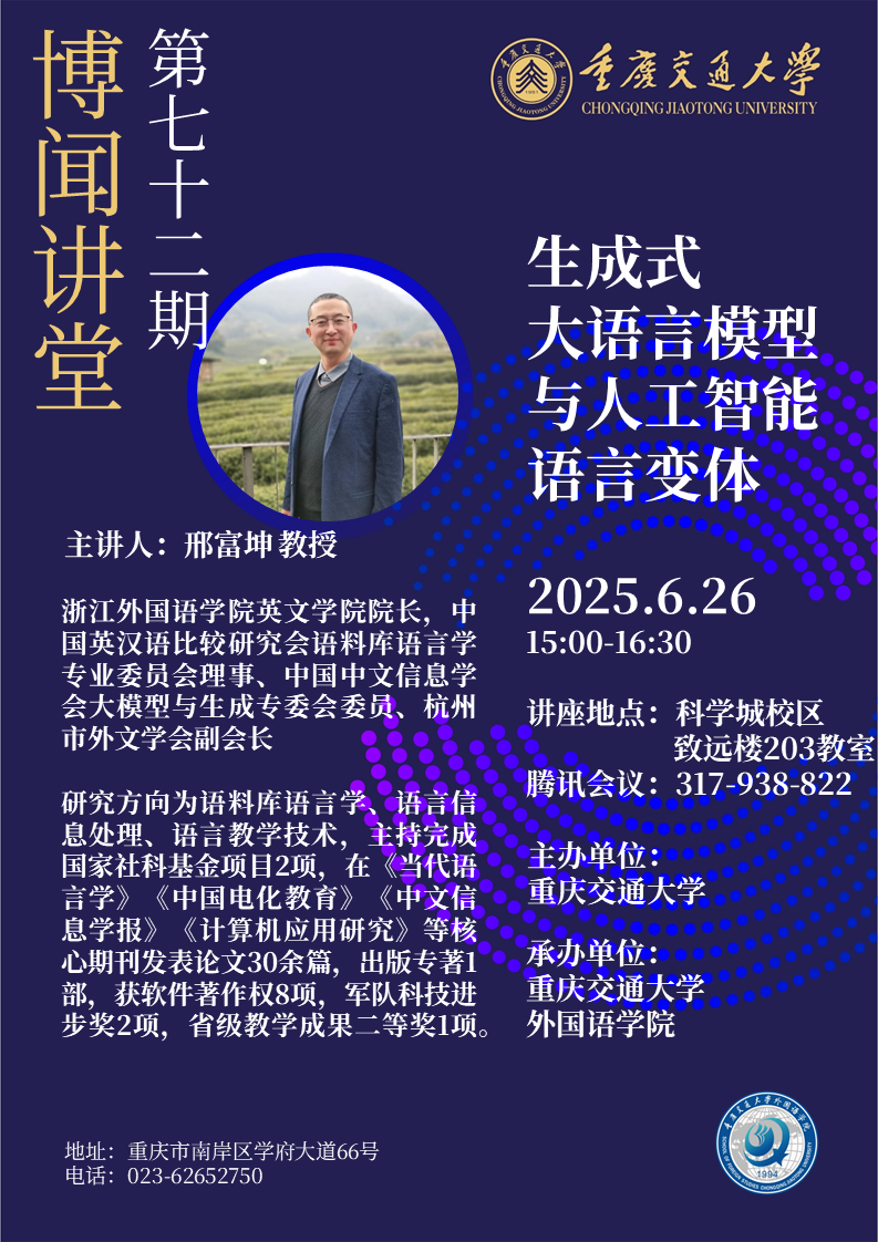 “博闻讲堂”第72期预告——邢富坤教授 生成式大语言模型与人工智能语言变体